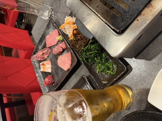 昨日は朝方までキツいなと思ったので、焼肉を食べて夜帰りました。盛り合わせを頼んだら1枚一枚紹介して頂く高級なお店でした。 盛...